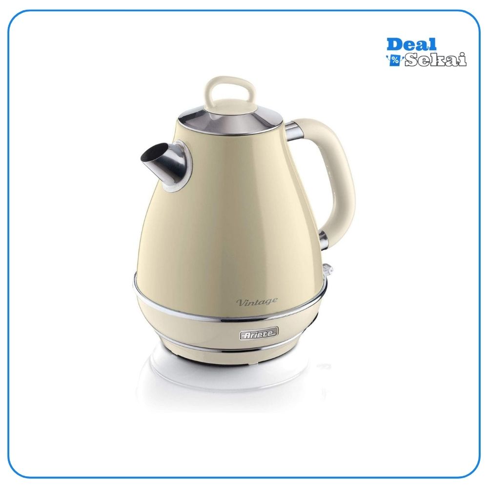 Ariete 2869 Vintage,elektrischer Wasserkocher aus Edelstahl,1,7 Liter, für Wasser,Tee und Kräutertees,Abschaltautomatik, 2000 W, Pastellbeige