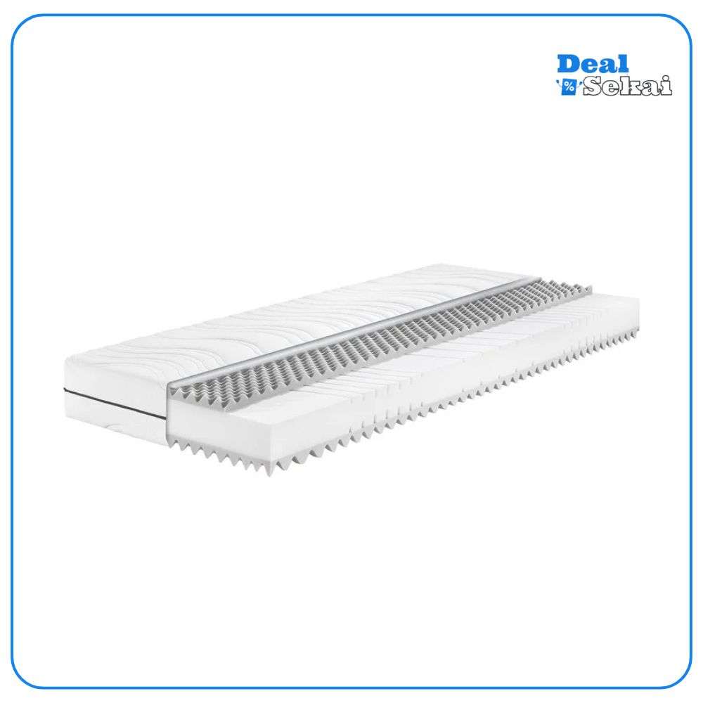 Die Matratze BADENIA TRENDLINE »BT 260« ist eine 7-Zonen-Matratze mit einer Basis aus Komfort-Schaum und beidseitig hochwertigen Kaltschaumauflagen in Noppen-Schnitt-Technik. Die Matratze besitzt einen dreistufigen, progressiven Aufbau, der für eine gute Ergonomie der Matratze sorgt. Das bedeutet, dass die Matratze den Körper auf der oberen Liegefläche sehr weich, punktelastisch und damit sehr gut druckverteilend aufnimmt. Das darunter liegende Kernbasismaterial dagegen bietet eine höhere Festigkeit. Die Oberfläche der festeren Kernbasis ist zusätzlich mit einer 7-Zonen-Schnitt-Technik versehen, die dem Material in dieser Übergangsebene eine körperzonengerechte Anschmiegsamkeit verleiht und sanft zur Kernmitte mit der höchsten Festigkeit und Unterstützung für den Körper überleitet.
