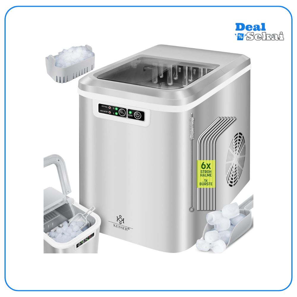 KESSER® Eiswürfelbereiter | Eiswürfelmaschine Edelstahl | Ice Maker | 12 kg 24 h | Zubereitung in 7 min | 2,2 Liter Wassertank | 2 Eiswürfel-Größen | LED-Display | Selbstreinigungsfunktion | Silber