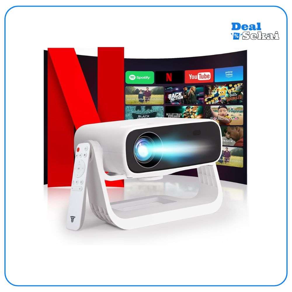 2025 Neuer Upgraded Full HD 1080P Beamer, 20000 Lumens, 4K Unterstützung, Android 11, WiFi 6& Bluetooth 5.2, automatische Trapezkorrektur, 120° schwenkbarer Heimkino Beamer