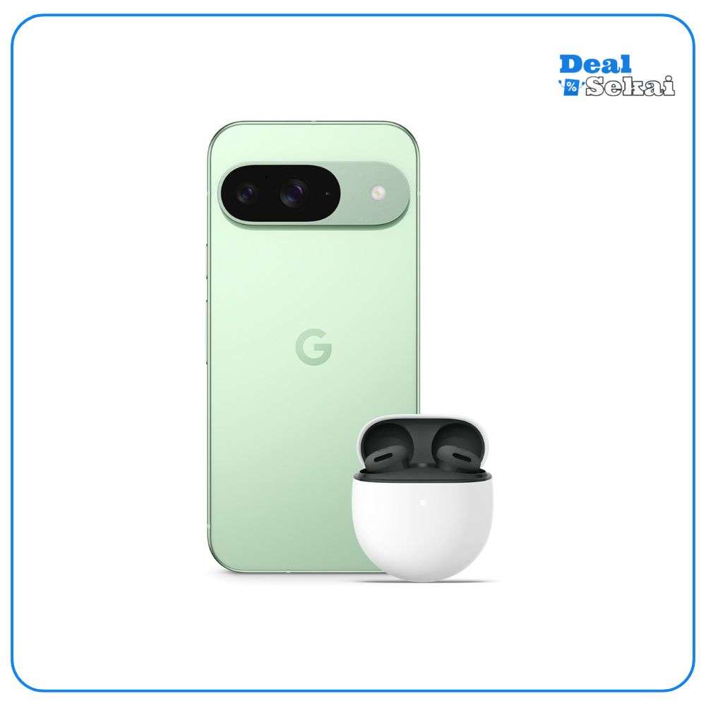 Google Pixel 9 – Android-Smartphone mit Gemini ohne SIM-Lock, erweiterte Kamerafunktion, 24 Stunden Akkulaufzeit und EIN 6,3 Zoll großes Actua-Display – Wintergreen, 128GB with Pixel Buds 2a